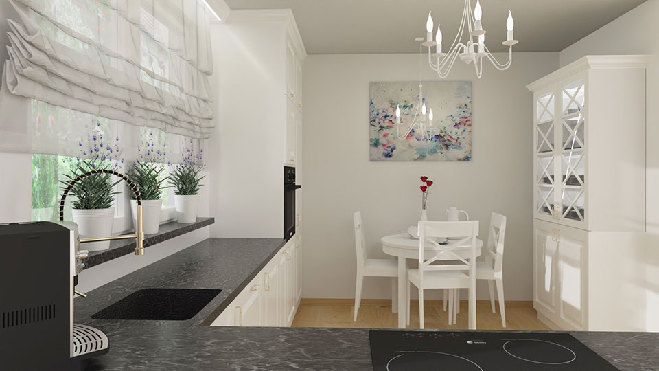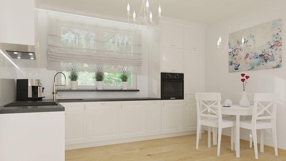 do nich światła. Nowe wnętrza miały współgrać z pozostałymi np. ozdobioną stylowymi meblami jadalnią, na którą otwiera się kuchnia.