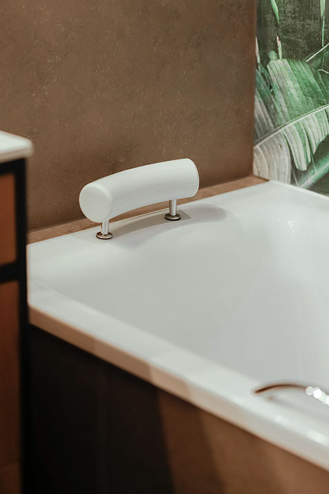 Łazienka w ciemnej kolorystyce, koniecznie wygodna wanna dla niej