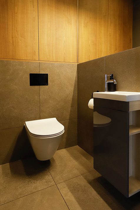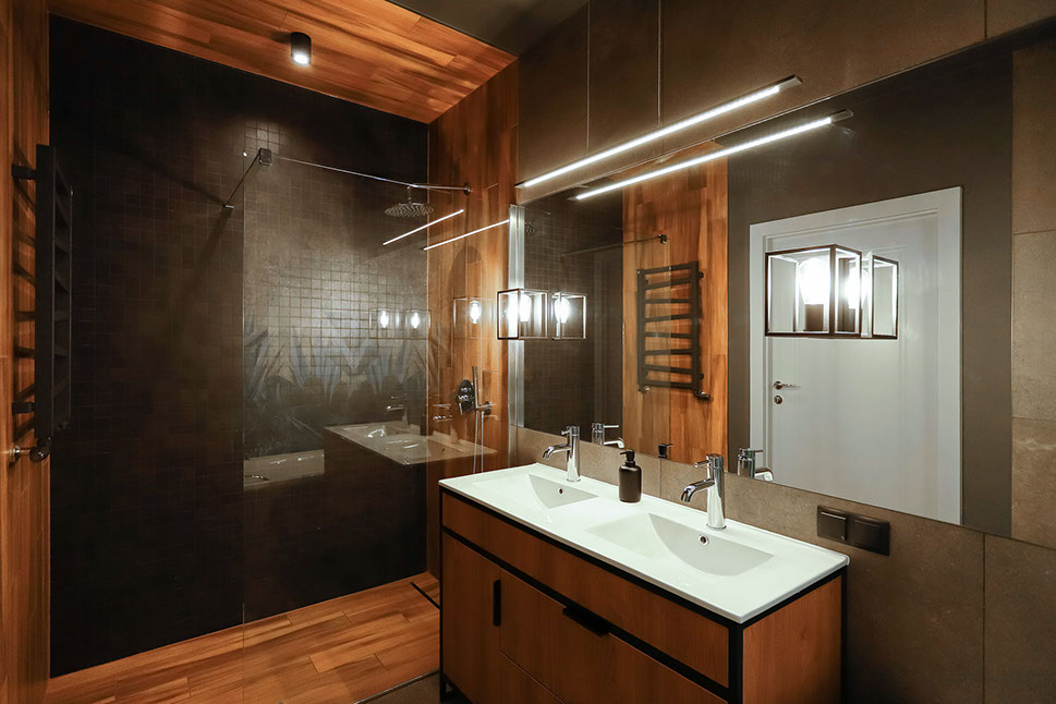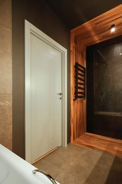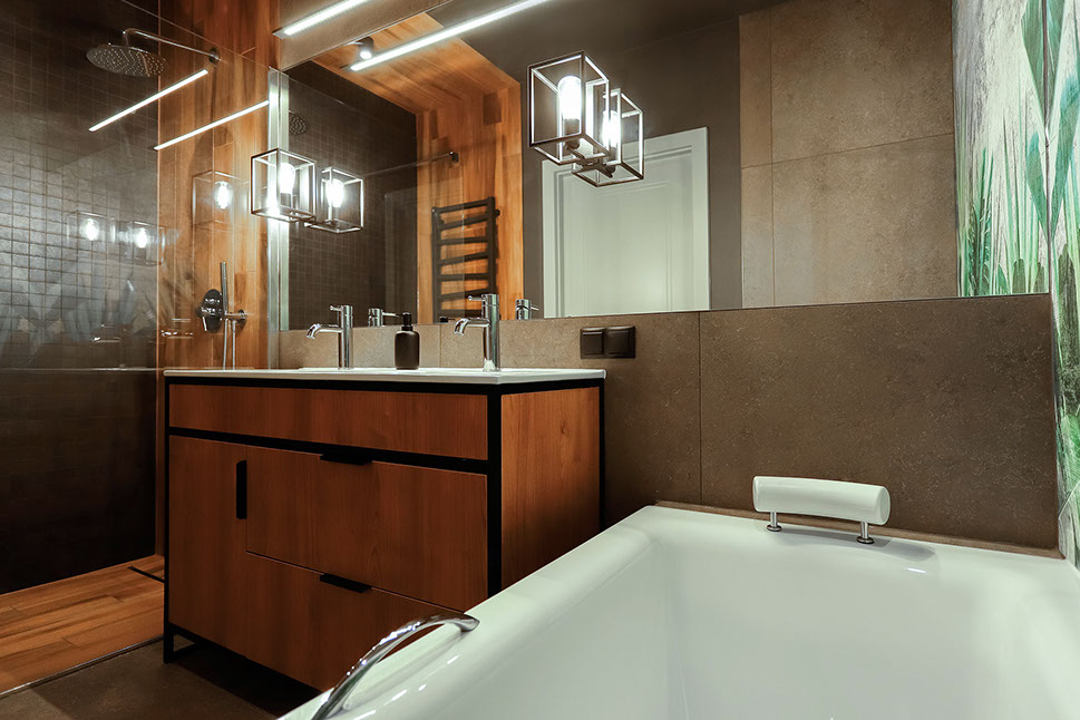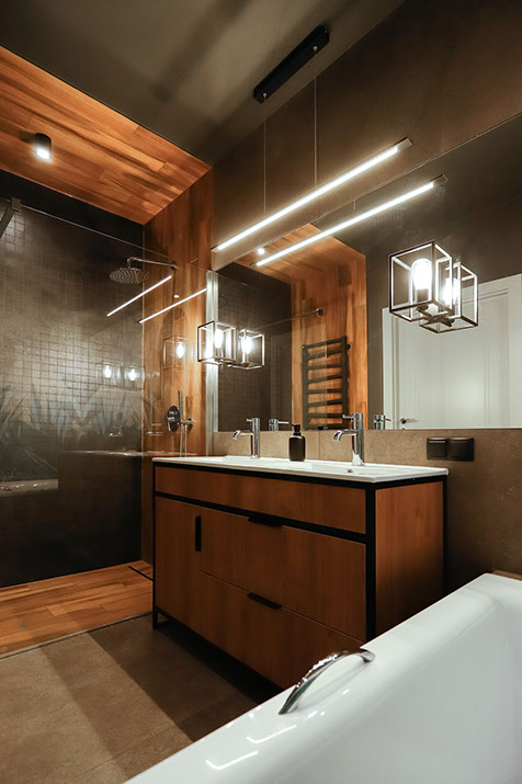 Jakie było założenie inwestora? Łazienka w ciemnej kolorystyce, koniecznie wygodna wanna dla niej