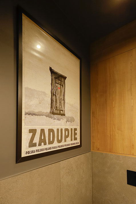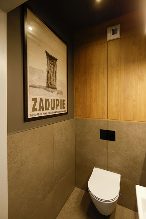 na uwagę zasługuje grafitowy sufit oraz użycie
